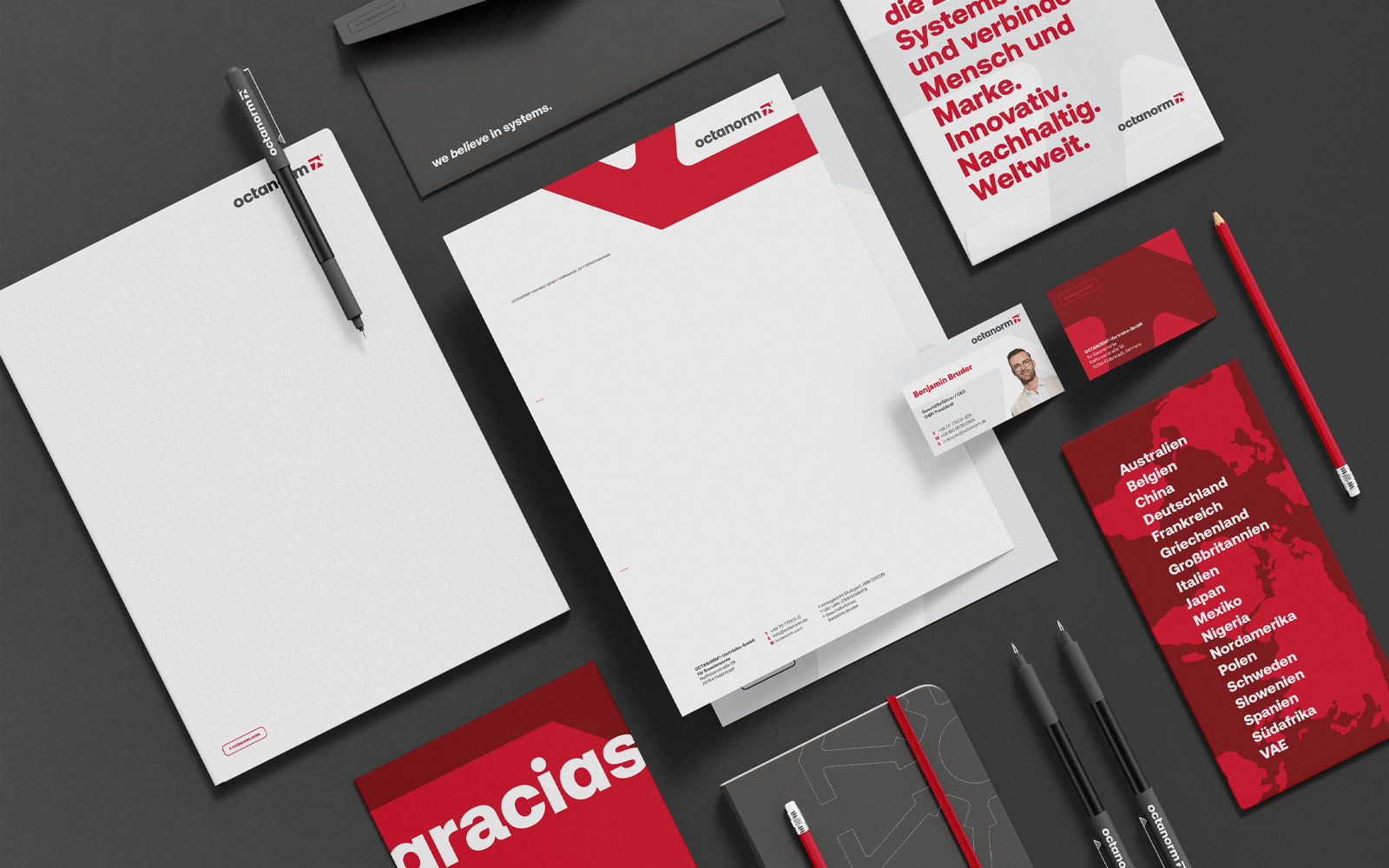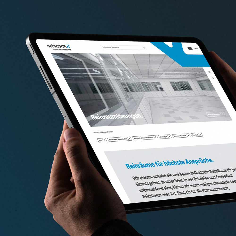Für den internationalen Systemanbieter octanorm haben wir einen umfassenden Corporate Design Relaunch umgesetzt – strategisch, visuell und technisch: vom Logo über Print und Geschäftsausstattung bis zur internationalen TYPO3-Website, vom Showroom bis zur Präsentation.