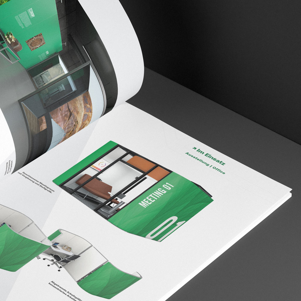 Im Printbereich entstanden eine hochwertige Imagebroschüre, emotionale Produkt-Imagebroschüren, informative Produkt-Technikbroschüren sowie eine aktualisierte Nachhaltigkeitsbroschüre. Die komplette Geschäftsausstattung wurde im neuen Design umgesetzt.